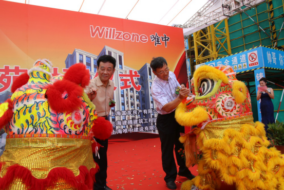 儀式上大家欣賞了祥獅獻瑞的醒獅表演,文通集團董事長張永勝和唯中集團董事長詹復成兩位領(lǐng)導為金獅點睛。隨著鼓聲,醒獅歡騰舞動,獻出對聯(lián) “圓滿成功、財源廣進”,慶賀文通嘉苑項目順利結(jié)構(gòu)封頂,拉開了整場典禮的序幕。